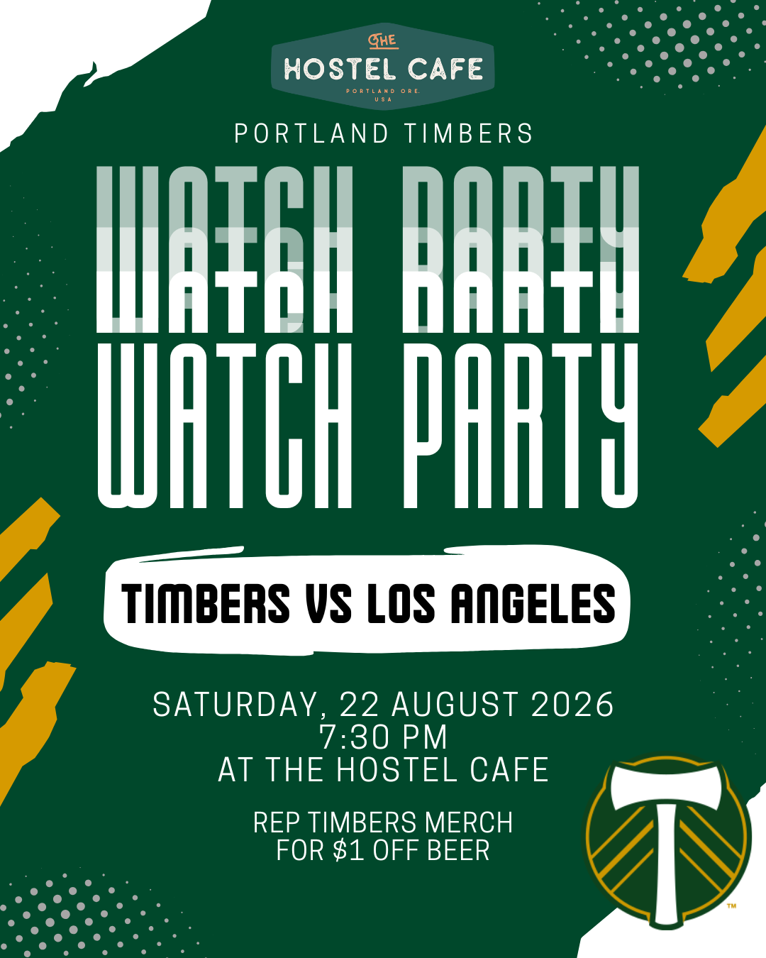 Join us at The Hostel Cafe to watch the Portland Timbers vs. LAFC match live. Grab a meal, enjoy a cold beer, and cheer on your favorite soccer team with fellow fans. The match will be shown in our commons and, weather permitting, in the courtyard, so you won’t miss a minute of the action.